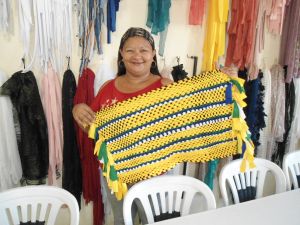 MARIA LÚCIA (MÃE DA DAIANE) CHEGA AO FINAL DO CURSO DE TAPEÇARIA DO PROJETO "TECENDO A VIDA" E EXIBE, ORGULHOSA, SEU PRIMEIRO TAPETE.